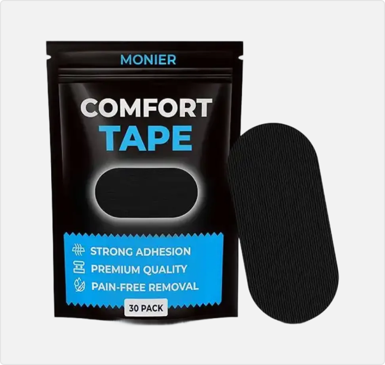 During hands-on evaluation and review of user feedback, Hostage Tape’s adhesive strength stood out as its defining characteristic. While this can be appealing for users who want a tape that feels very secure, the tradeoff is that the material may feel stiffer or less forgiving on the skin compared to softer, more comfort-focused options like JustSlumber.
